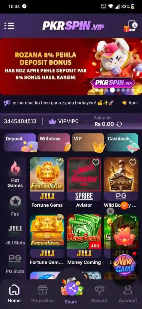 PKRSPIN Game is described as an online casino platform that allows users to play different betting style games and potentially earn money. Because of daily bonuses and referral rewards, it has gained attention among Android users.